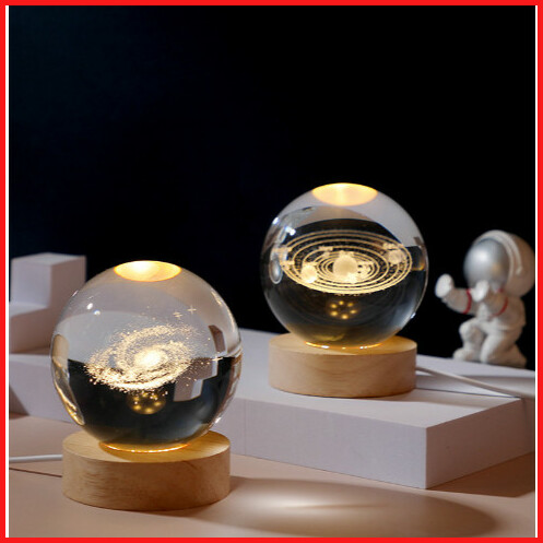 Lampu Bola Kristal Kamar Tidur Kaca Motif Lucu Hadiah Galaxy Bulan Planet Led Hiasan Dekorasi Meja Kamar