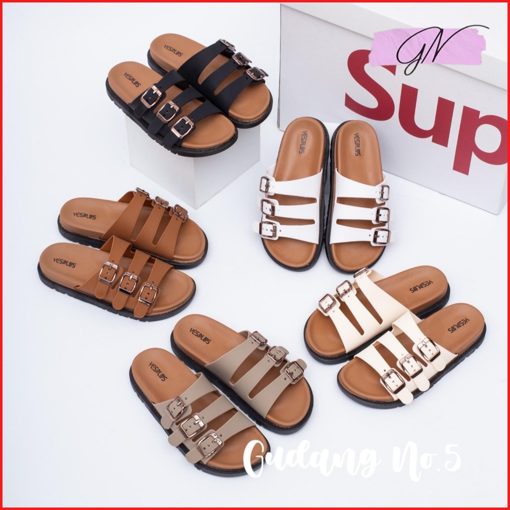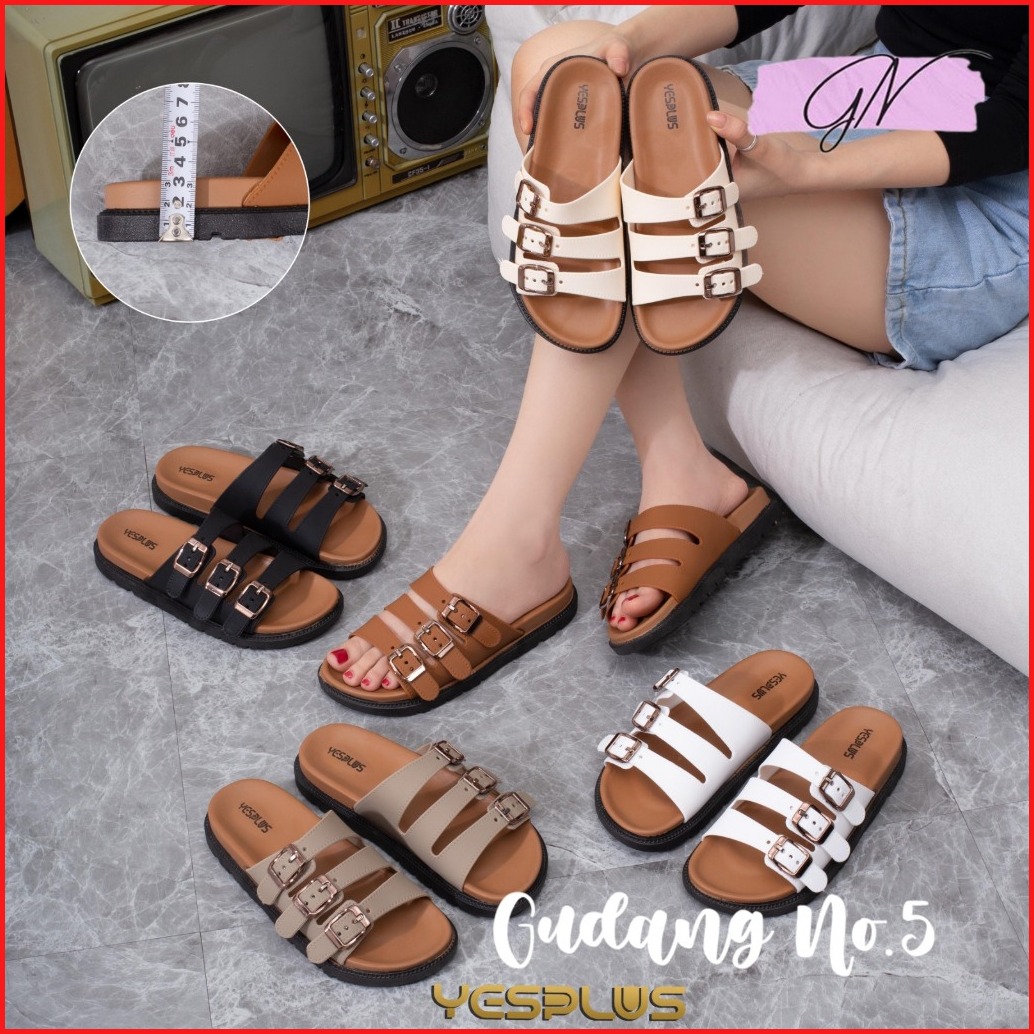 Gn-2508-2 Sandal Selop Flat Sandal Jelly Teplek Wanita Tali Gesper Ban 3 Import Pcu