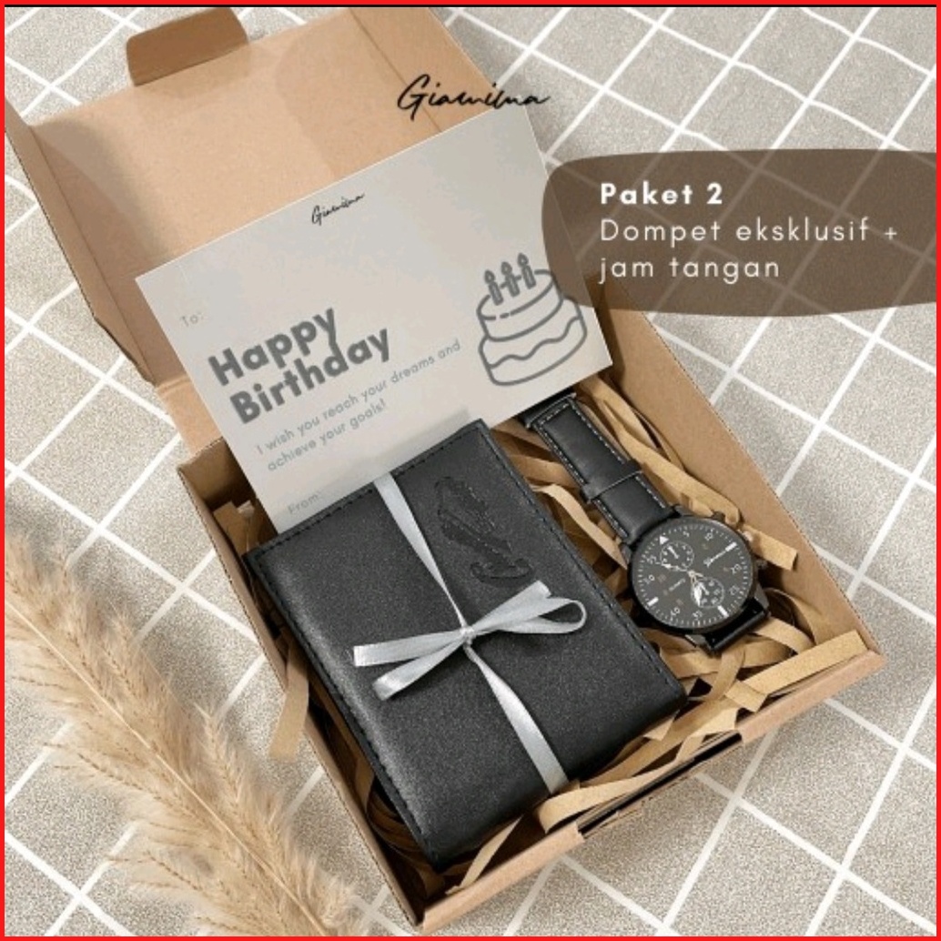En Ligne - Jam Tangan Pria Set - Jam Tangan Gift - Jam Tangan Kado - Jam Tangan Dompet Set - Kado Ultah - Hampers