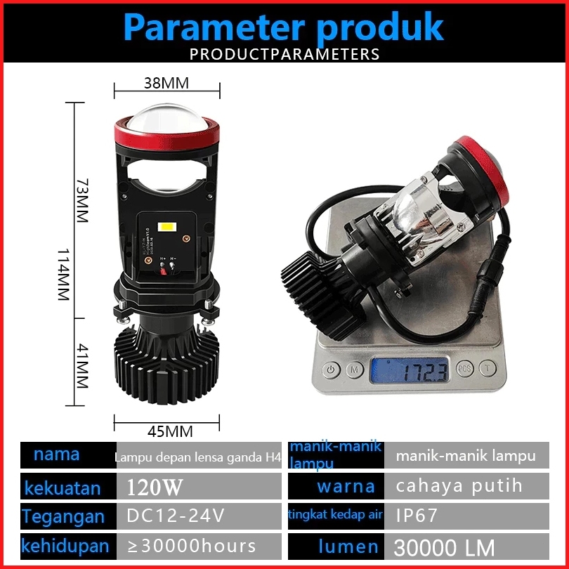 Lampu Led Motor Original Y7d H4 Mini Projector Lens 120watt Import Super Terang Lampu Led Mobil Dan Motor Dengan Kipas A
