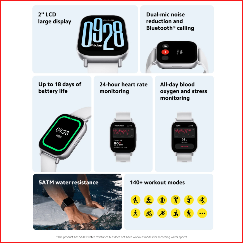 Xiaomi Redmi Watch 5 Active 2.00 Inch 140 Mode Olahraga Tahan Air 5atm Baterai Tahan 18 Hari