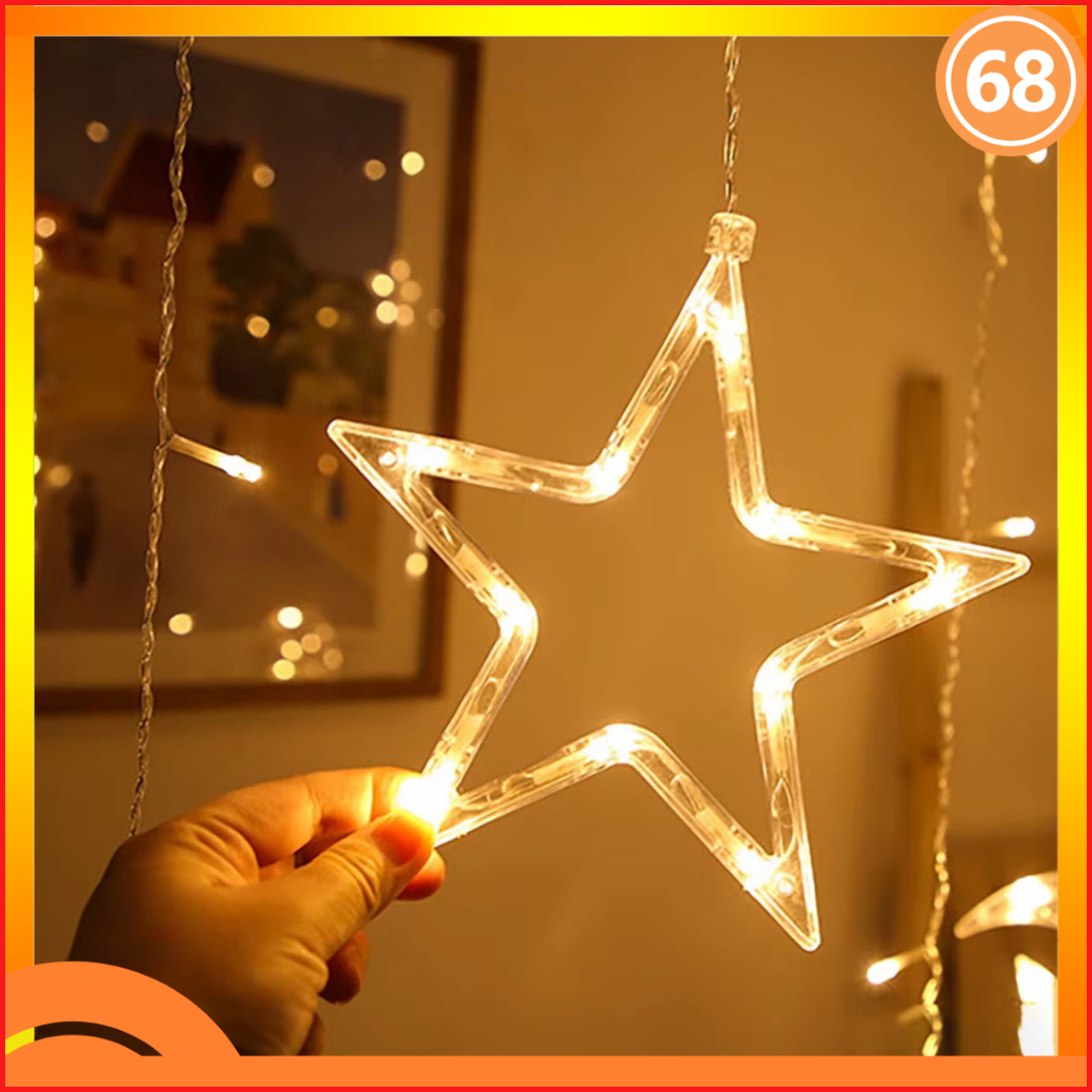 Lampu Natal Tirai Bintang Bulan Led Tumblr Light Tirai Led Star Curtain Light Wedding Warmwhite