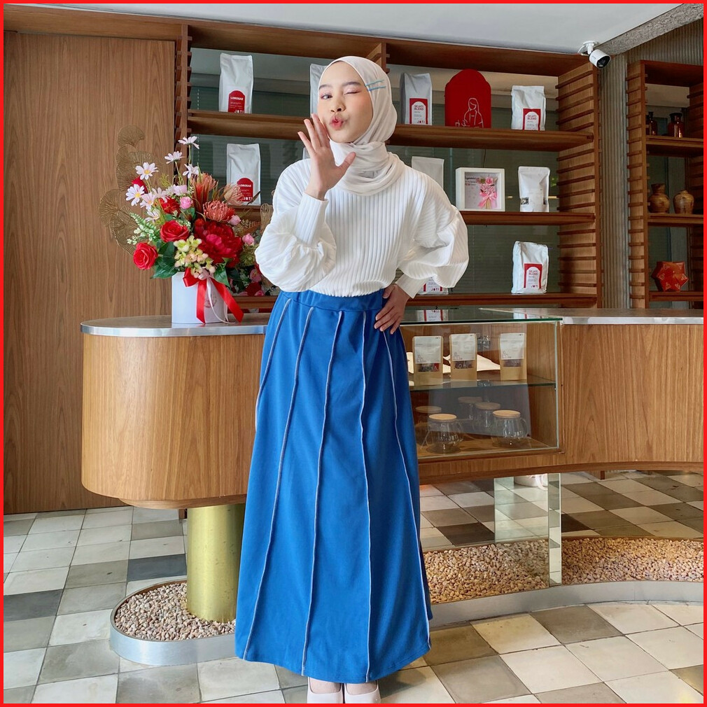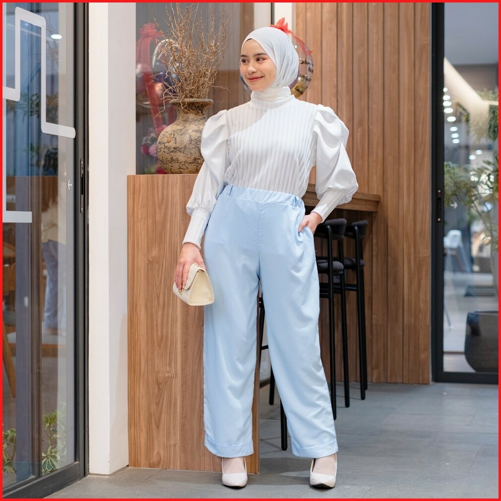 Blouse Knit Puff Mix Satin Kemeja Lengan Balon Blouse Korean Style Blouse Viral 2024