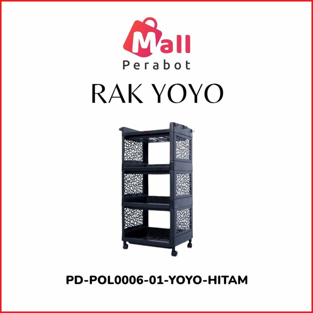 Mall Perabot Rak Susun Yoyo Hitam Serbaguna 4 Tingkat Dengan Roda Rak Kamar Mandi Bahan Plastik Portable Rak Dapur Troll