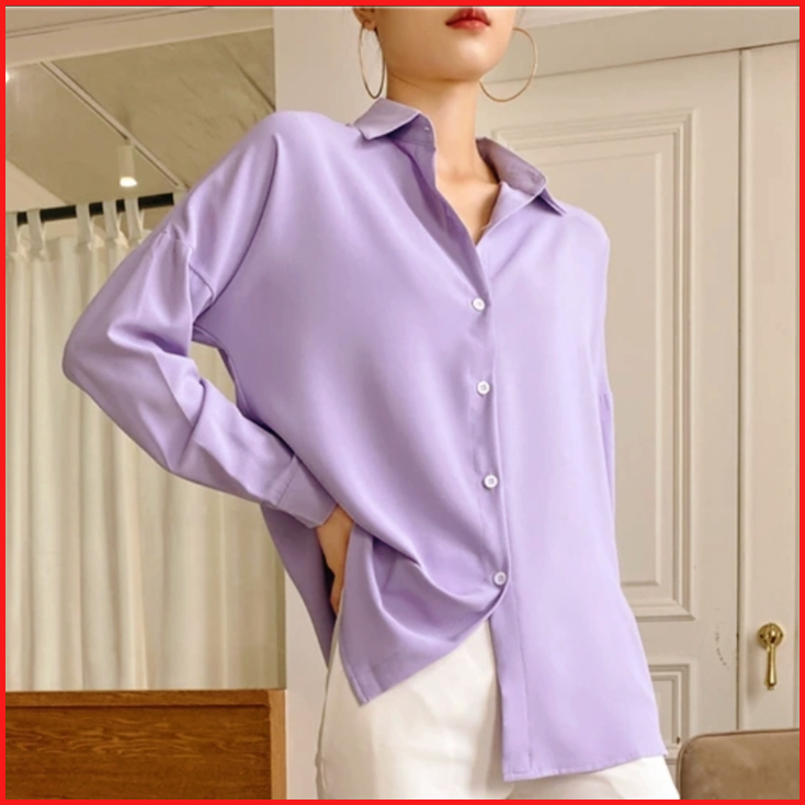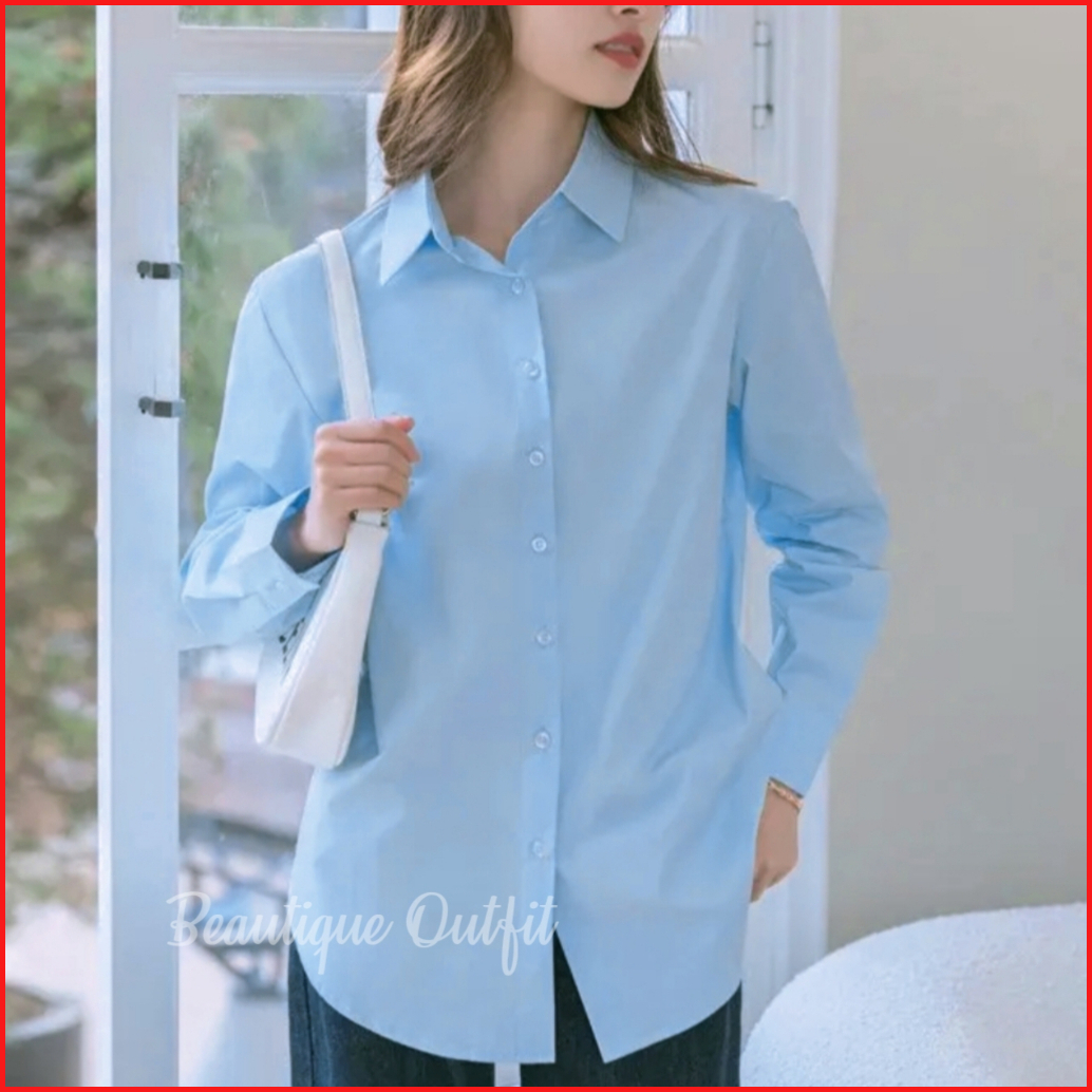 Kemeja Polos Wanita Atasan Kasual Polos Putih Hitam Formal Kemeja Kerja