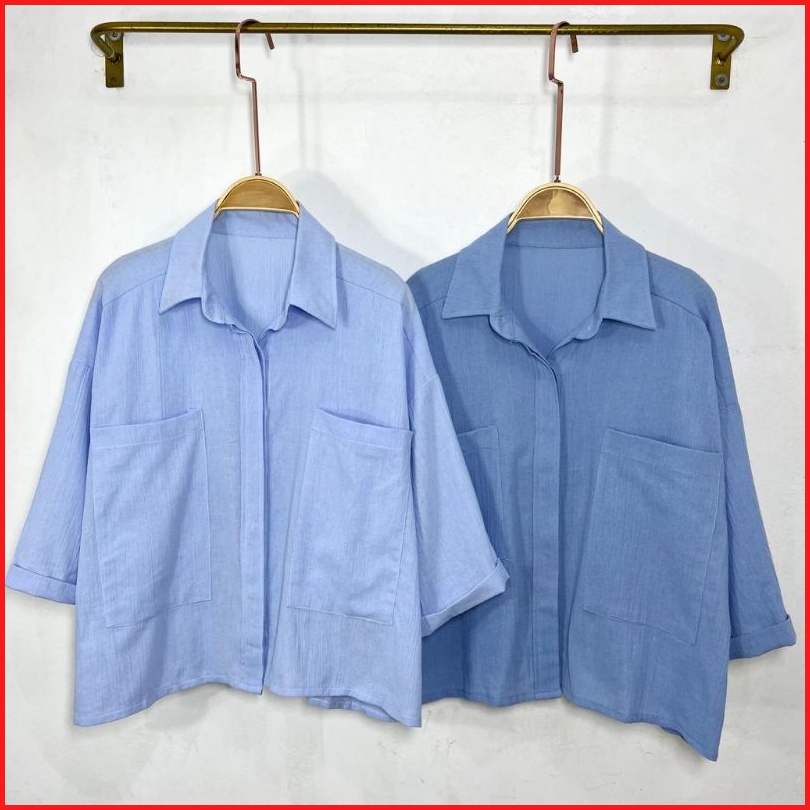 Kemeja Linen Wanita Atasan Wanita Korean Style Kemeja Kantong Terbaru