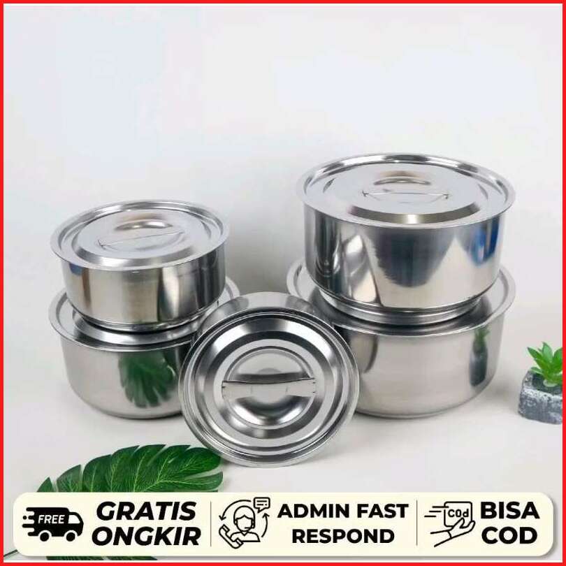 Al Panci Set Stock Pot Panci Sup Soup Pot Baskom Dengan Tutup Stainless Steel Panci My Home