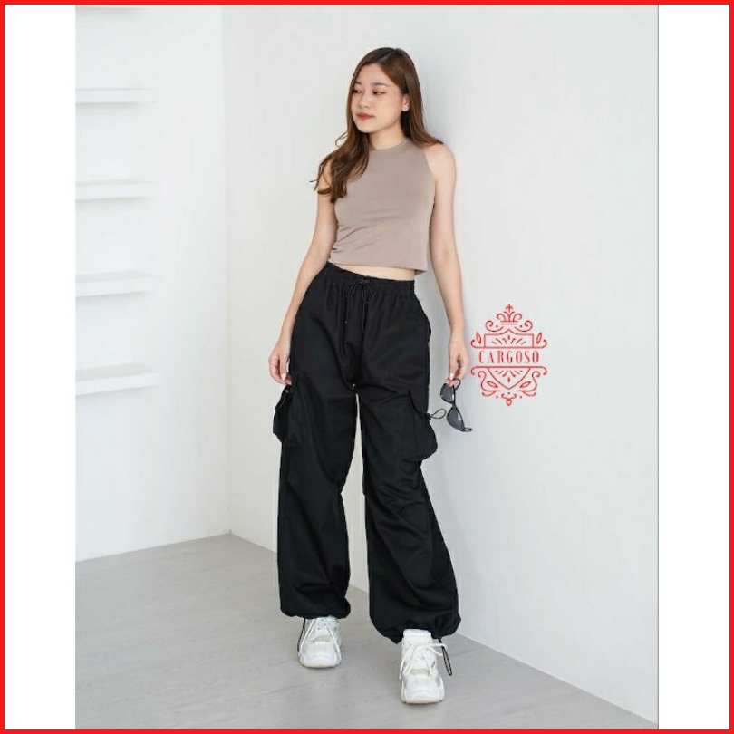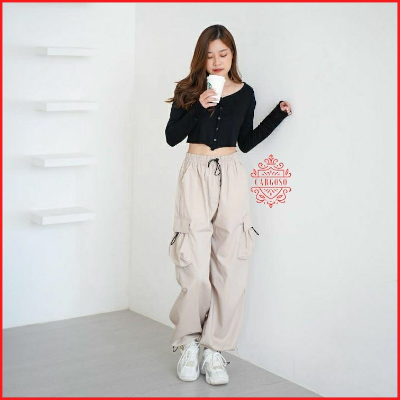Cargoso - Celana Cargo Wanita Highwaist Loose Pants Trouser Korean Style - Celana Gunung Wanita