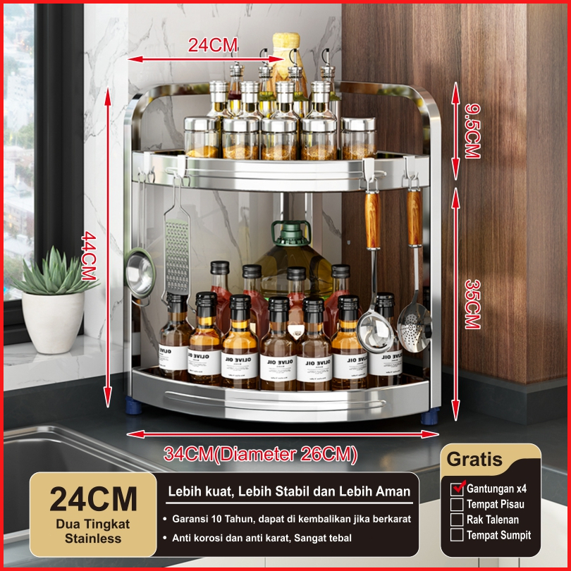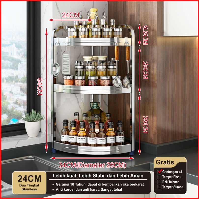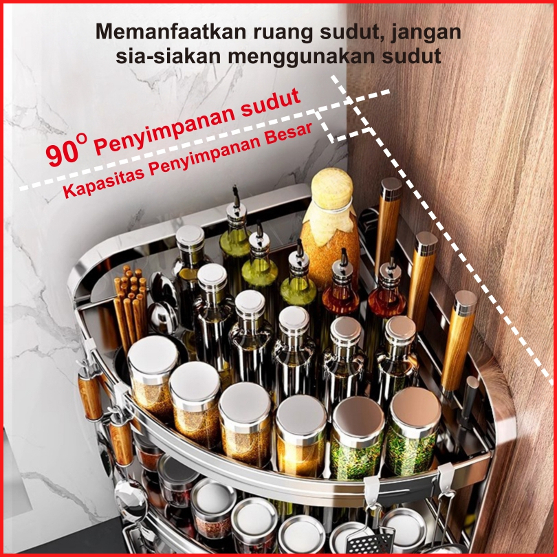 Rak Dapur Multifungsi Rak Bumbu Tempat Garam Dan Saus Rak Sudut Dapur Berbentuk Segitiga Dari Stainless Untuk Berbagai P