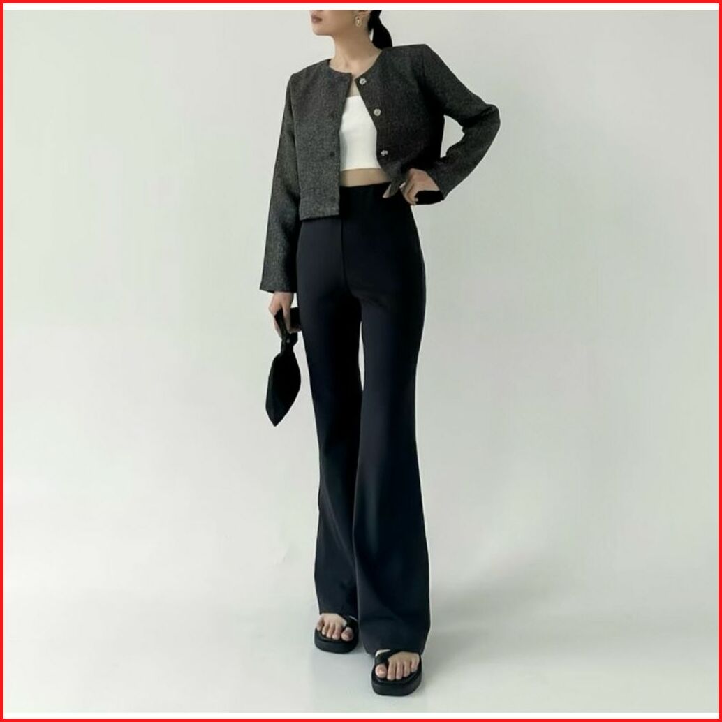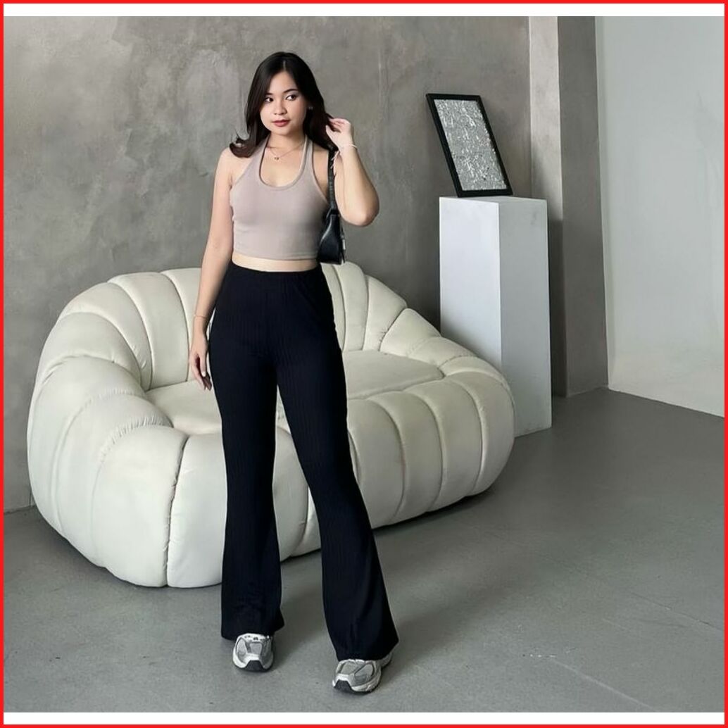 Celana Fit And Flare Pants Cutbray Scuba Pinggang Highwaist Bahan Stretch Melar Elastis Kulot Cutbray Scuba Jumbo