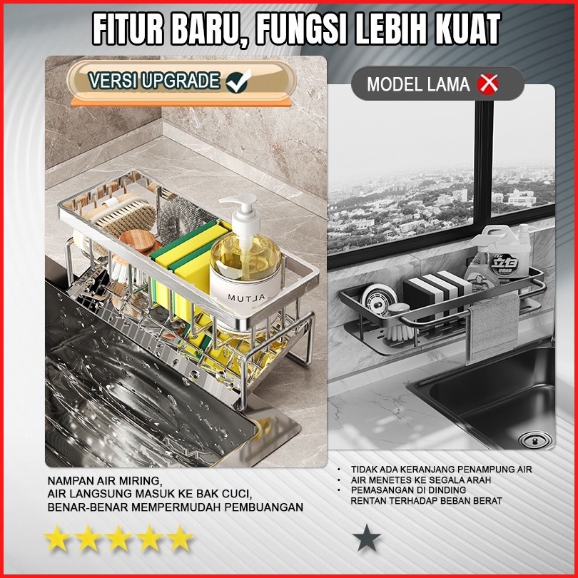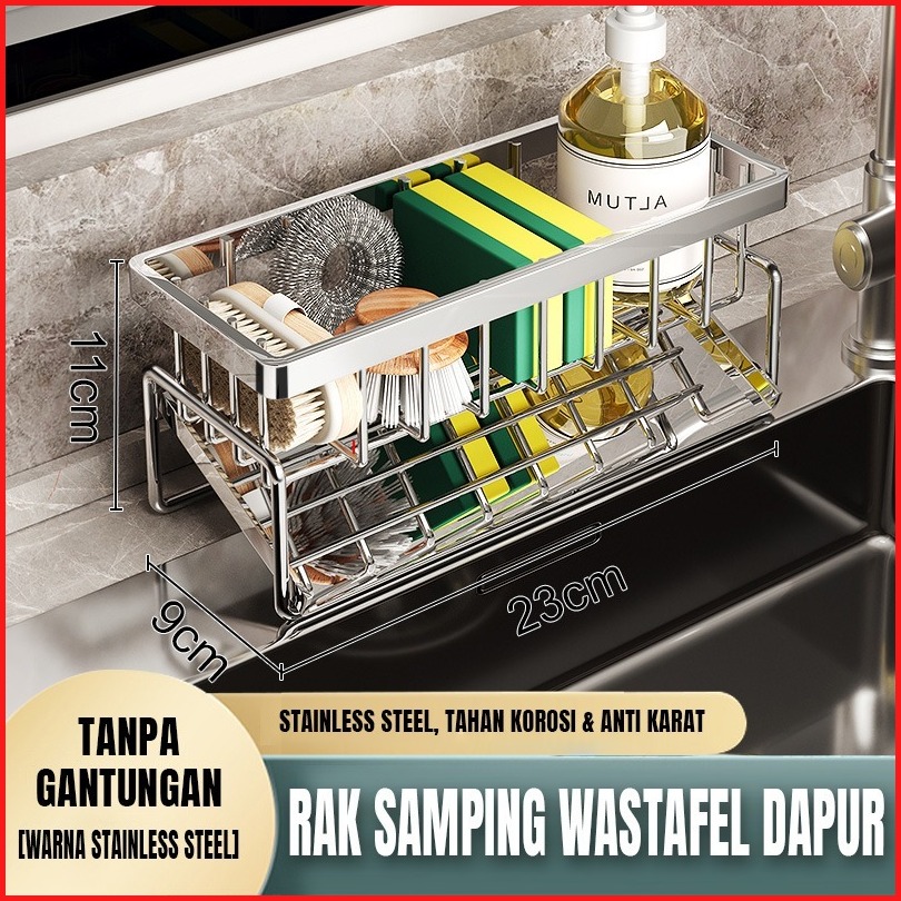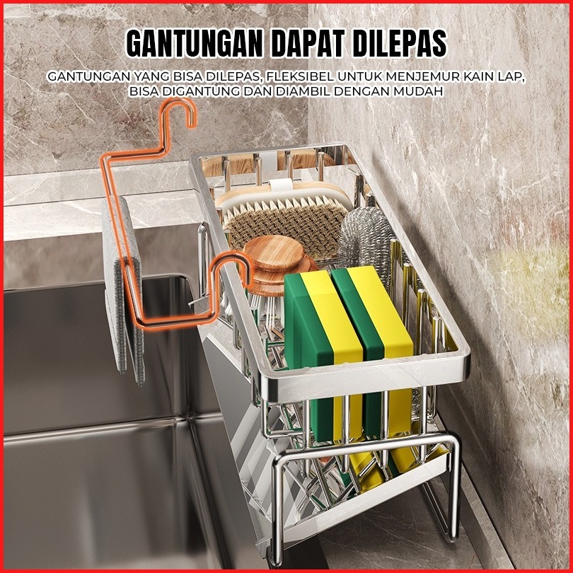Rak Serbaguna Dapur Dari Stainless Steel Tempat Kain Lap Rak Peniris Air Rak Penyimpanan Sabut Kawat Bisa Dipasang Di Ke