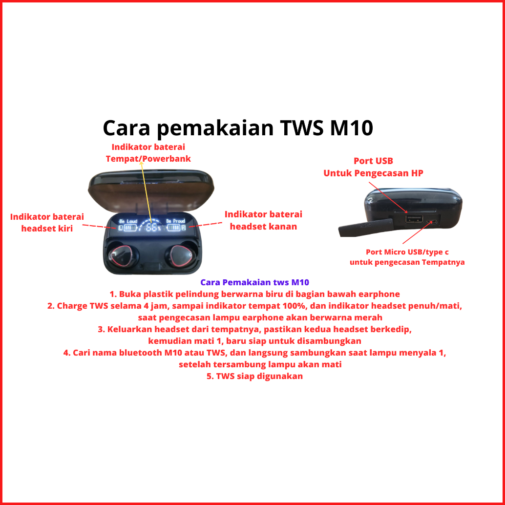 M10 Plus Tws Bluetooth V5.3 Earphone Hifi Stereo Sports Wireless Powerbank 2000mah