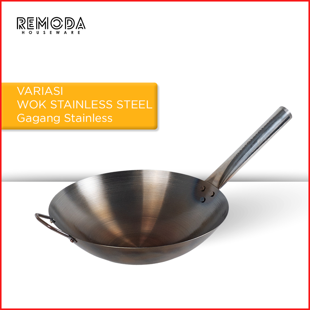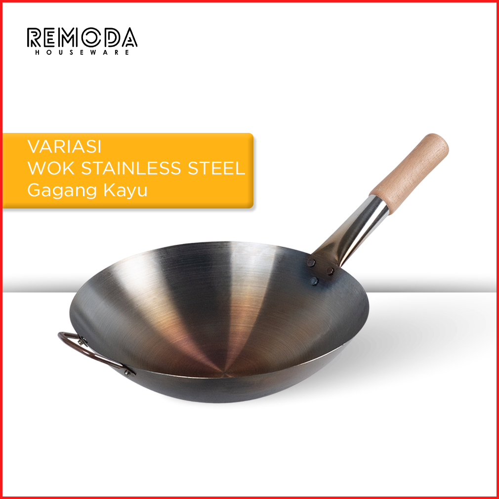 Calypso Wok Kuali Wajan Penggorengan Sudah Seasoning Anti Lengket 30-40cm Stainless Steel