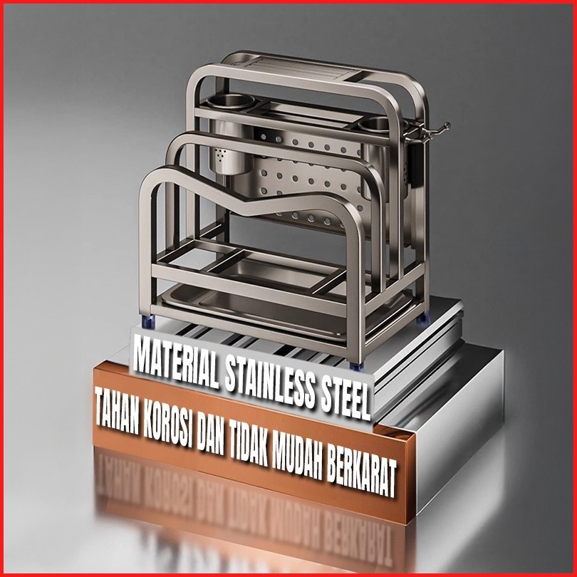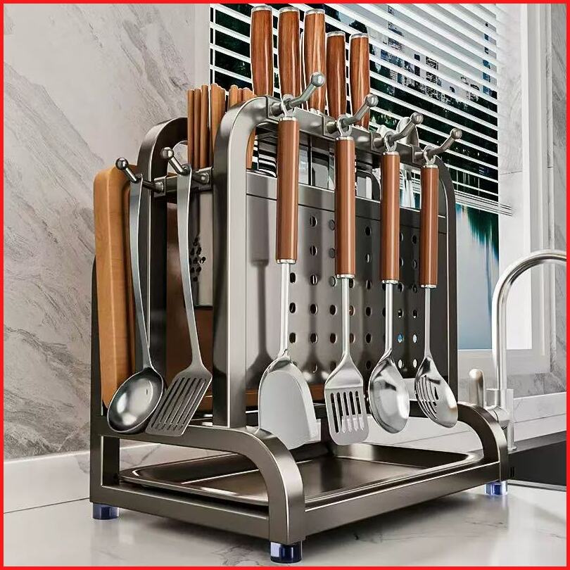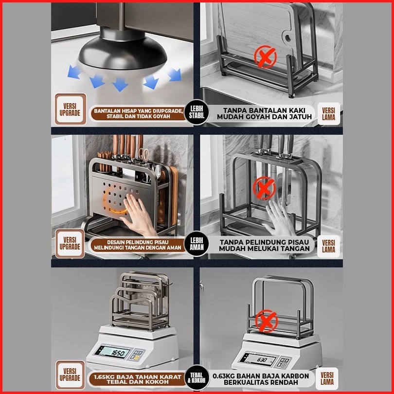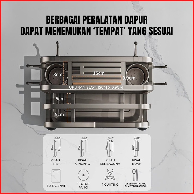 Rak Dapur Dari Stainless Untuk Pisau Rak Penyimpanan Bisa Gantung Dinding Model Baru Multifungsi Tempat Talenan Pisau Da