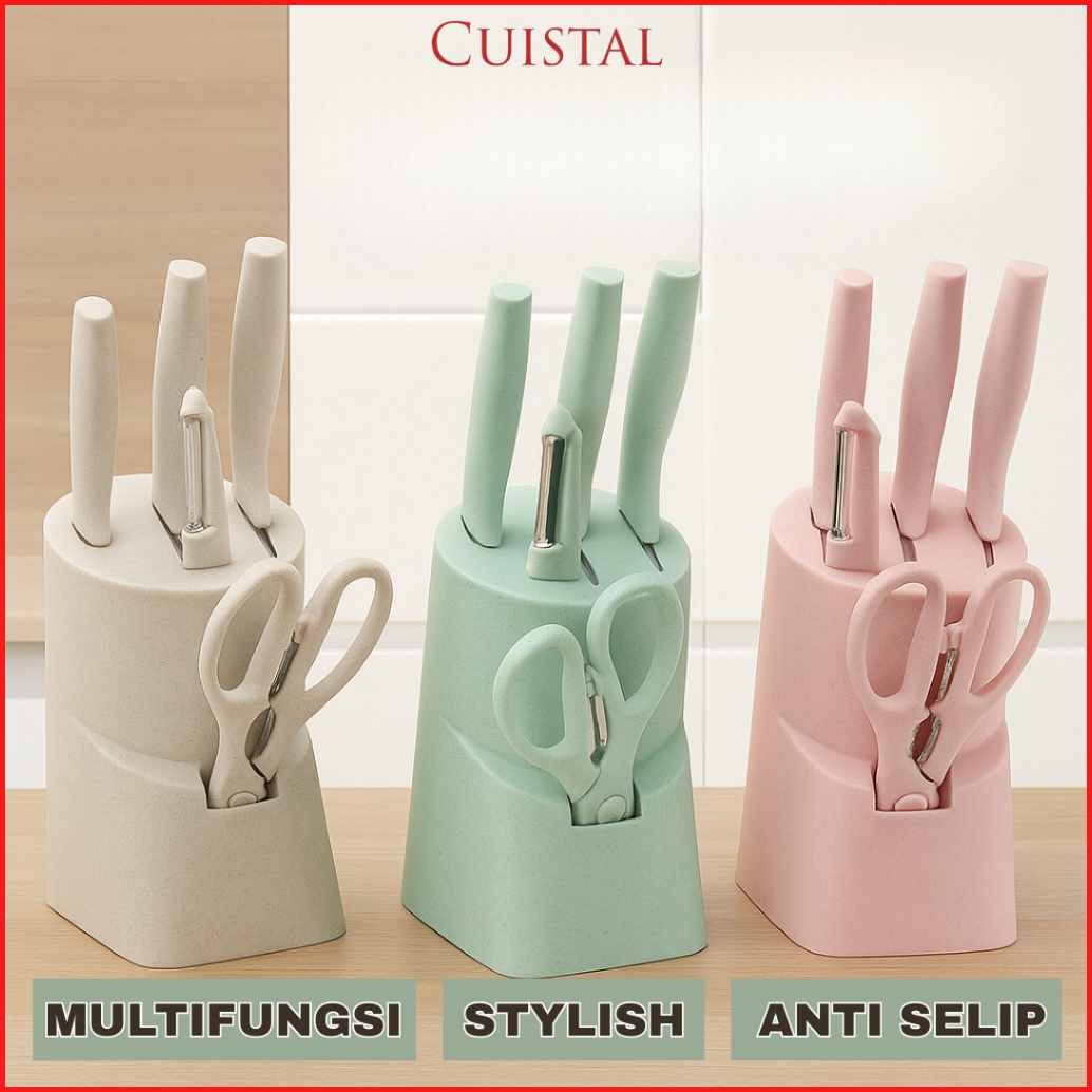 Cuistal C2 Set Pisau Dapur 6in1 Keramik Pisau Potong Holder Tempat Pisau Elegan