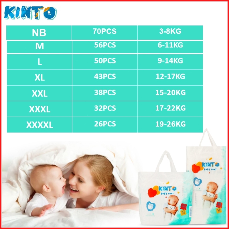 Kinto Popok Bayi Pants Celana Baby Pants Nb S70 M56 L50 Xl43 Xxl38 Xxxl32 Xxxxl26