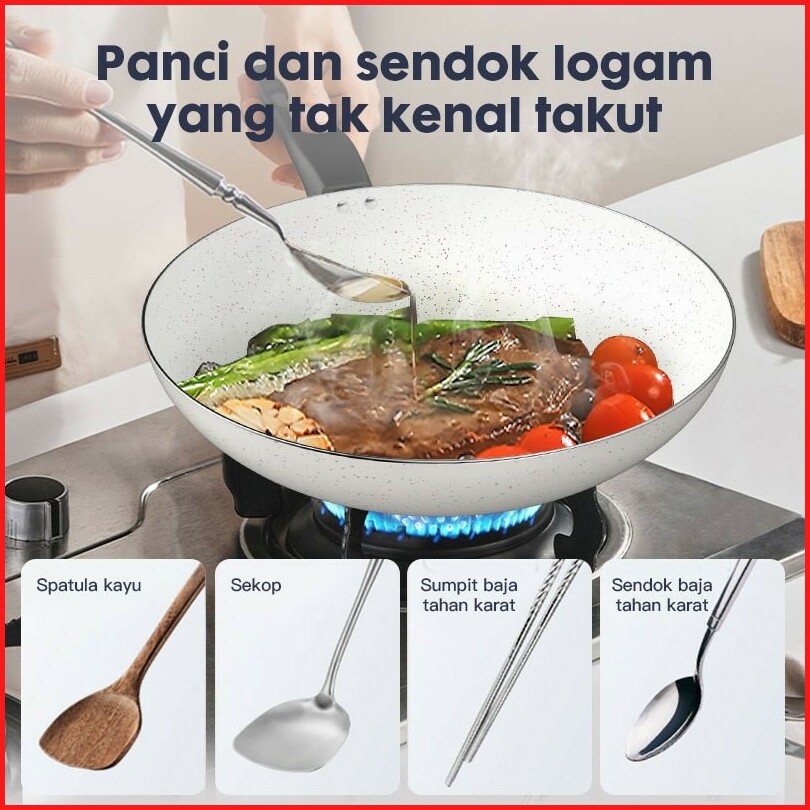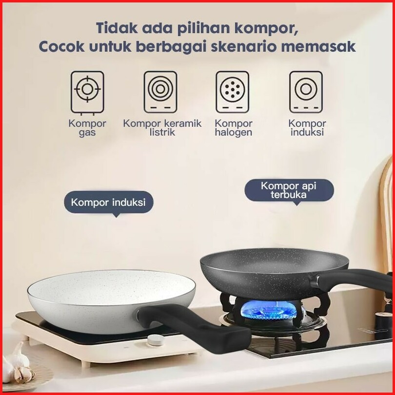 Eatkit Panci Anti Lengket 24cm Teflon Marble Coating Non-stick Wajan Penggorengan Fry Pan Saucepan