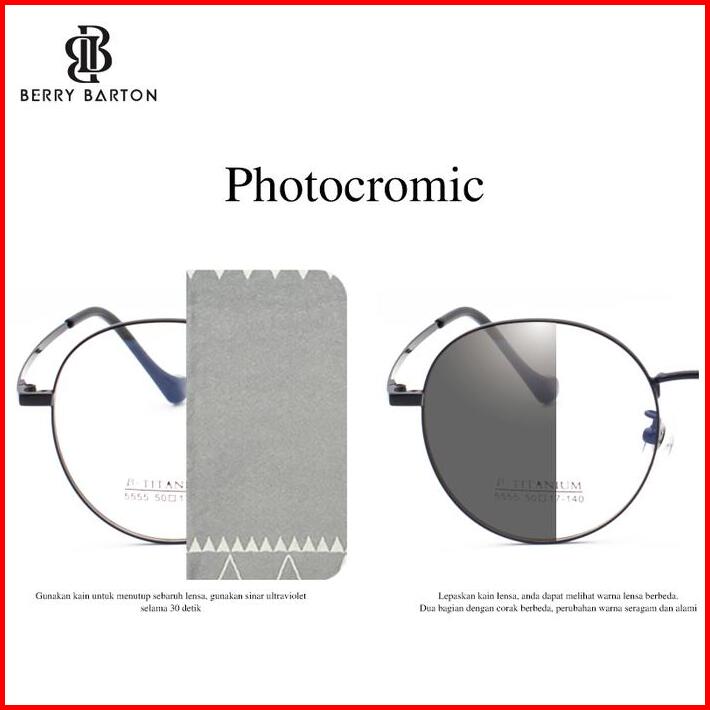 Kacamata Bulat Wanita Titanium Tren Style Blueray Photocromic 5555