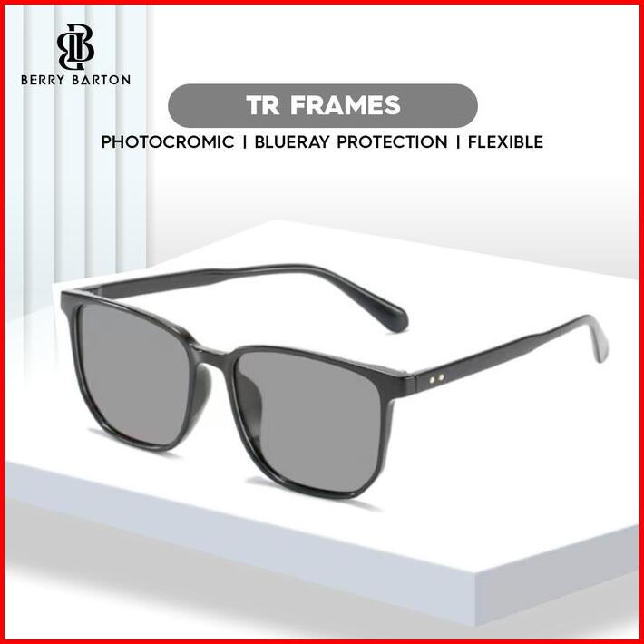 Berrybarton Kacamata Photocromic Kotak Lensa Bluecromic Tr Frame Fashion Pria Wanita 807
