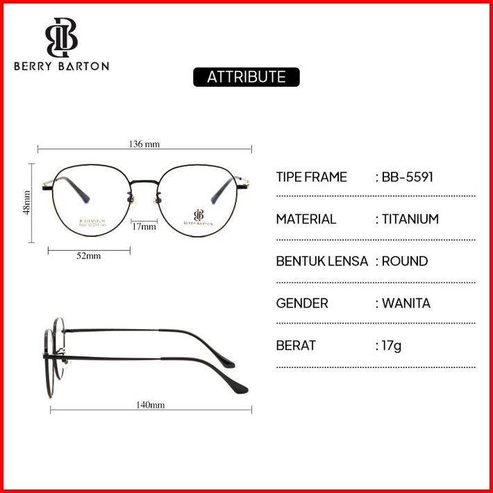 Kacamata Wanita Round Modern Titanium Photocromic Blueray Minus 5591