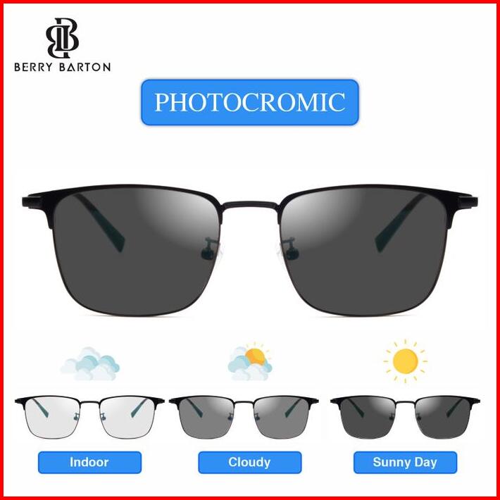 Kacamata Segi Panjang Titanium Photocromic Blueray Minus 9052