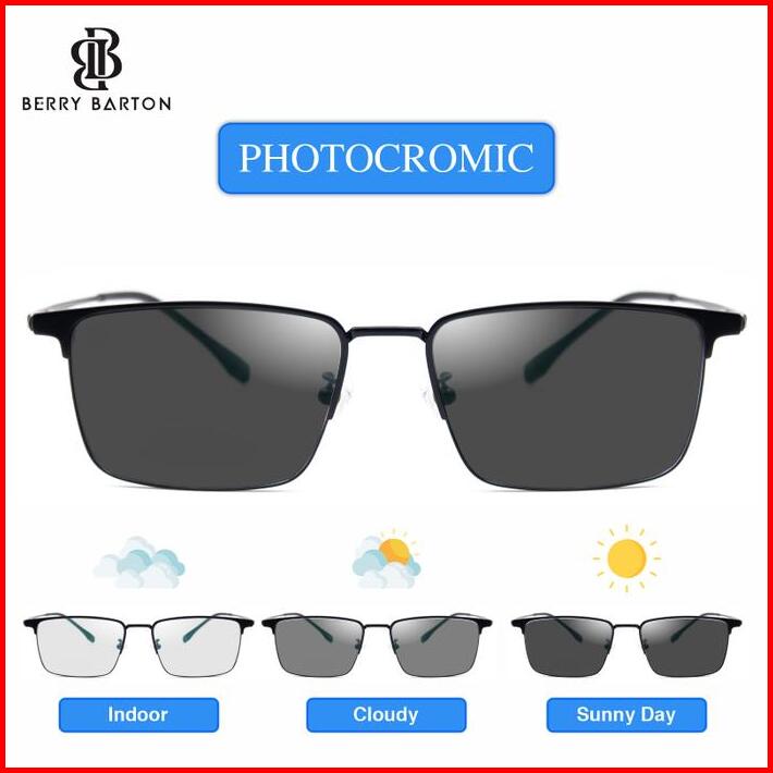 Kacamata Segi Panjang Titanium Bisnis Bisa Minus Photocromic 9048