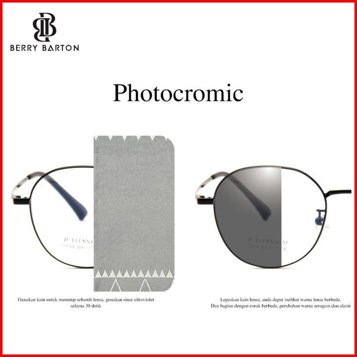 Kacamata Round Titanium Wanita Modern Photocromic Blueray Minus 5559