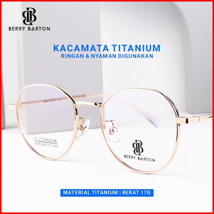 Kacamata Round Titanium Wanita Bisa Minus Photocromic Blueray 5549