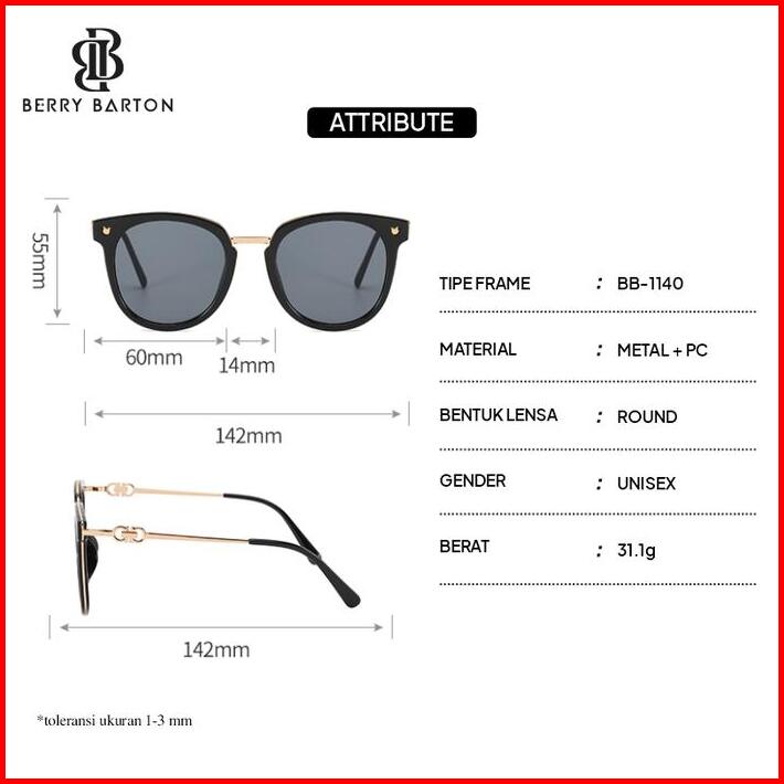 Kacamata Hitam Wanita Sunglasses Women Frame Model Korea Lensa Anti Uv 400 Berrybarton 1140