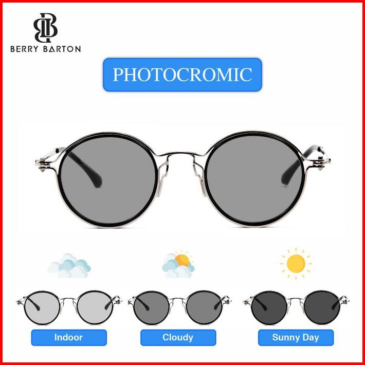 Kacamata Minus Frame Bulat Metal Modern Anti Blueray Photocromic 3185