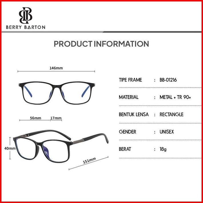 Kacamata Minus Photocromic Anti Blueray Frame Kotak Berrybarton 01216