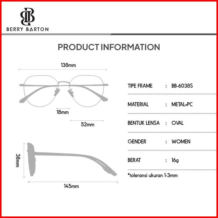 Kacamata Wanita Frame Oval Lensa Minus Anti Radiasi Berrybarton 6038s