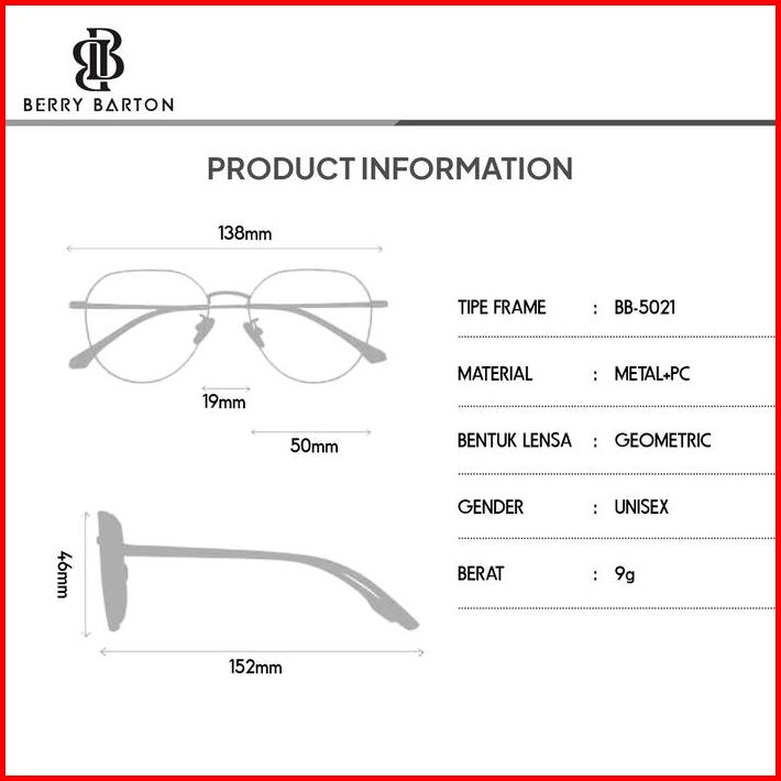 Kacamata Frame Geometric Metal Lensa Anti Blueray Photocromic 5021