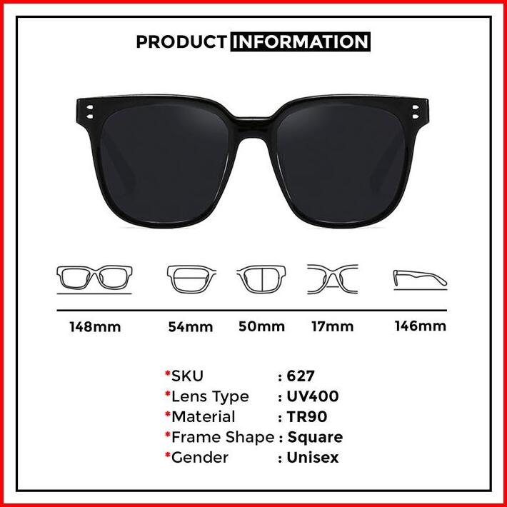 Kacamata Hitam Korean Style Square Tr Outdoor Sunglasses Anti Uv 627
