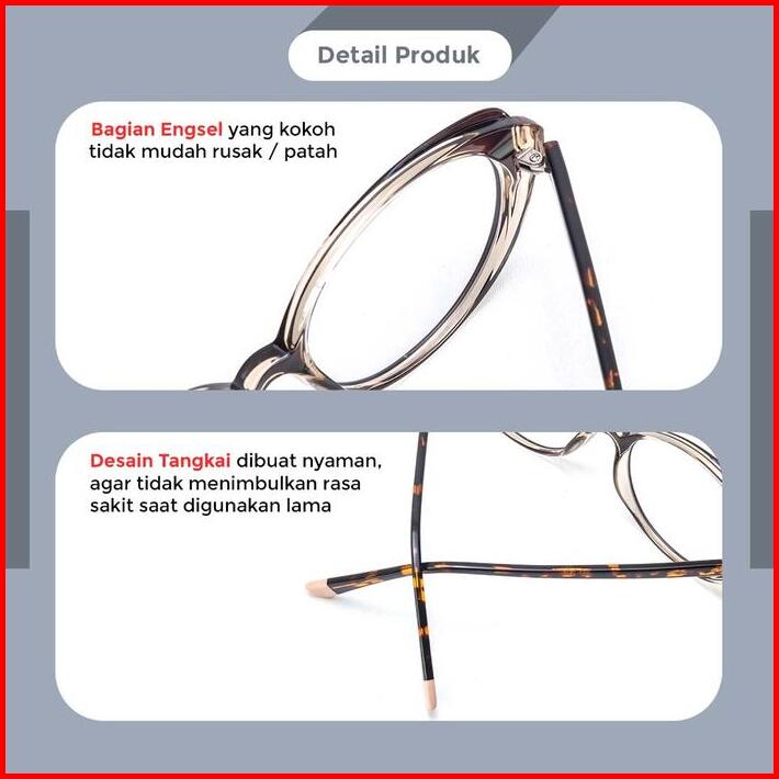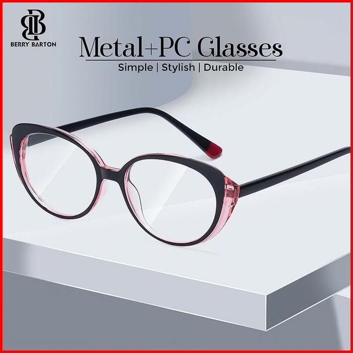 Kacamata Anti Radiasi Wanita Frame Cat Eye Metal Pc Berrybarton 8330