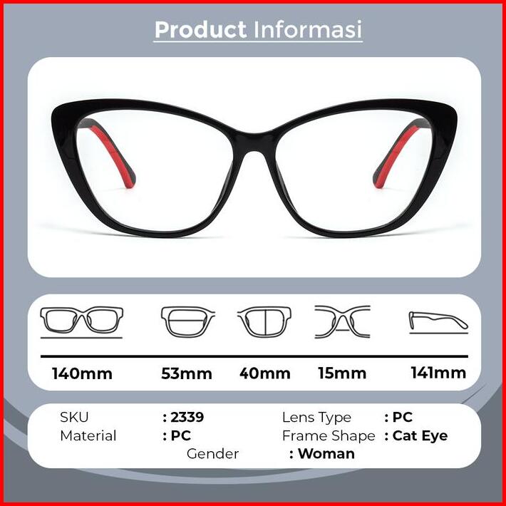 Kacamata Anti Radiasi Wanita Frame Cat Eye Fashion Wanita Perempuan Glasses Women Tr90 Berrybarton 2339