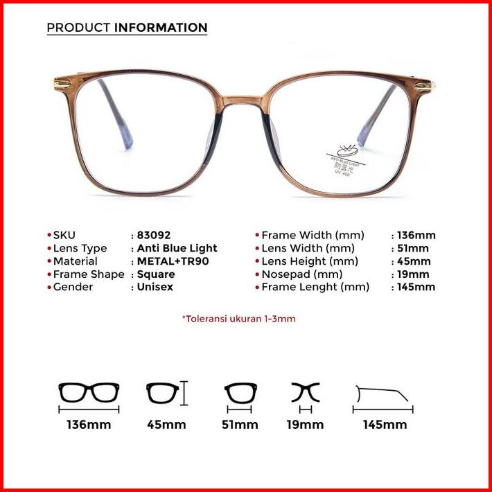 Kacamata Anti Radiasi Blueray Frame Kotak Berrybarton 83092