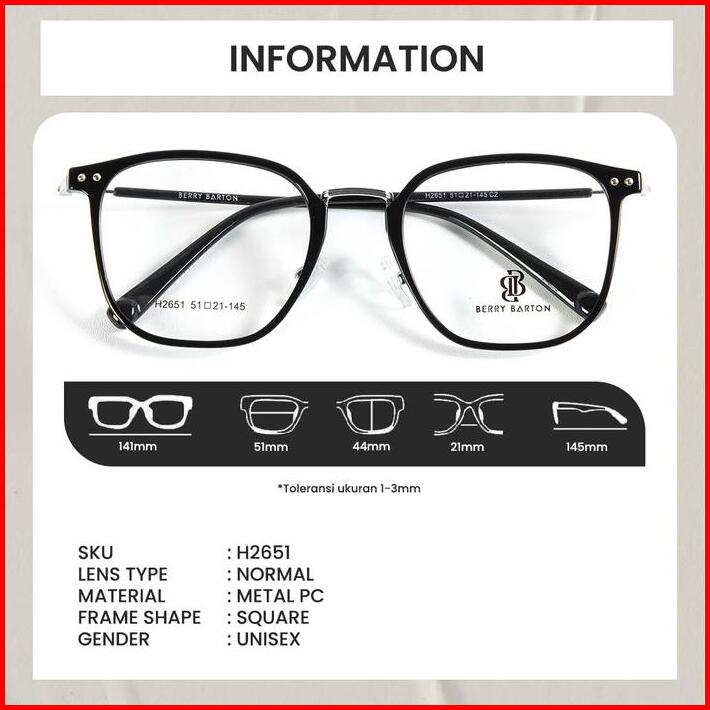 Kacamata Anti Radiasi Pria Wanita Model Kotak Berrybarton H2651