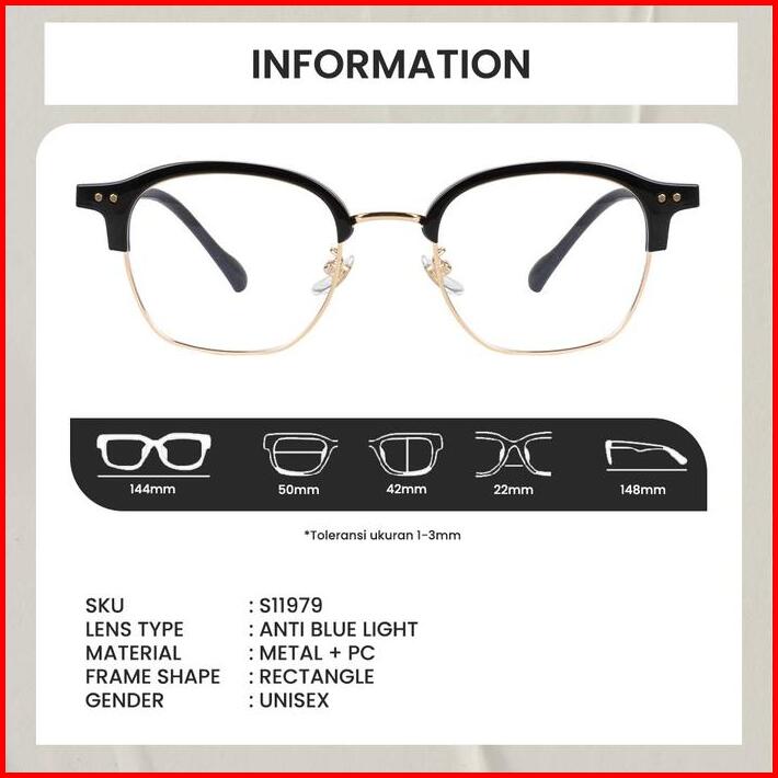 Kacamata Anti Radiasi Blueray Pria Vintage Kotak Berrybarton S11979