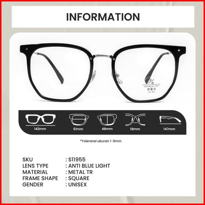 Kacamata Anti Radiasi Bluechromic Pria Wanita Kotak Berrybarton S11955
