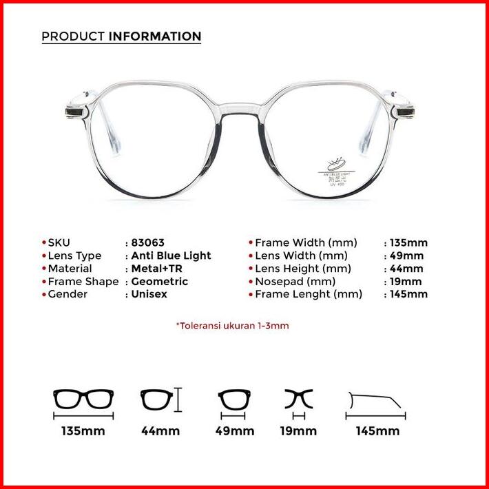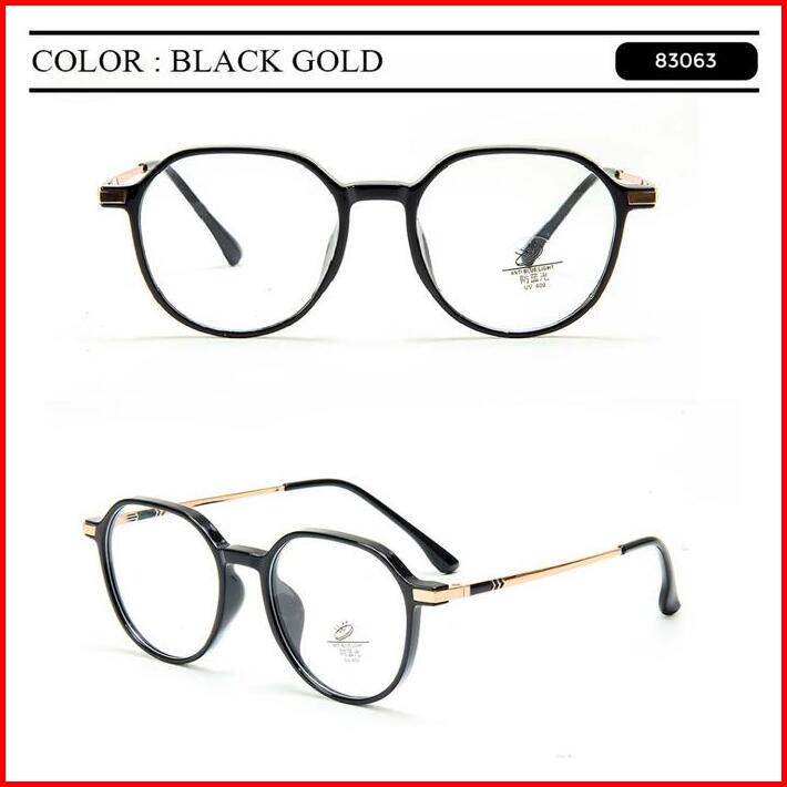Berrybarton Kacamata Segi Enam Lensa Anti Radiasi Photocromic Blueray Kacamata Metal Tr Minus Pria Wanita 83063