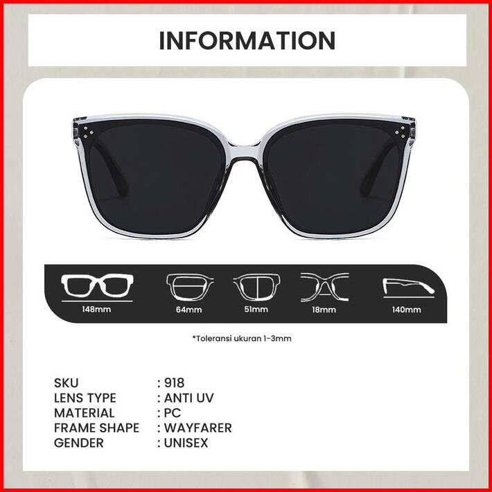 Kacamata Hitam Kotak Sunglasses Oversize Anti Uv 400 Untuk Wanita Frame Kotak I Lensa Anti Uv 400 I Berrybarton 918 Pale