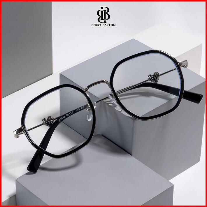 Kacamata Anti Radiasi Blueray Photocromic Minus Baca Frame Geometric Metal Tr 90 Pria Wanita Bluecromic Berrybarton 2304