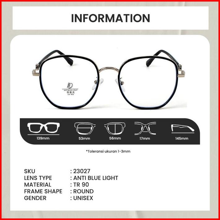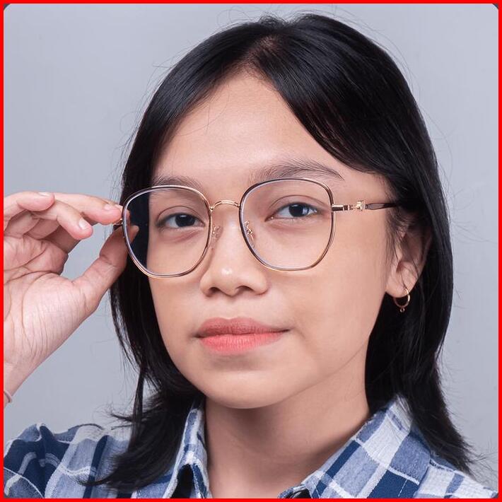 Kacamata Anti Radiasi Blueray Photocromic Minus Baca Frame Round Fashion Retro Pria Wanita Berrybarton 23027