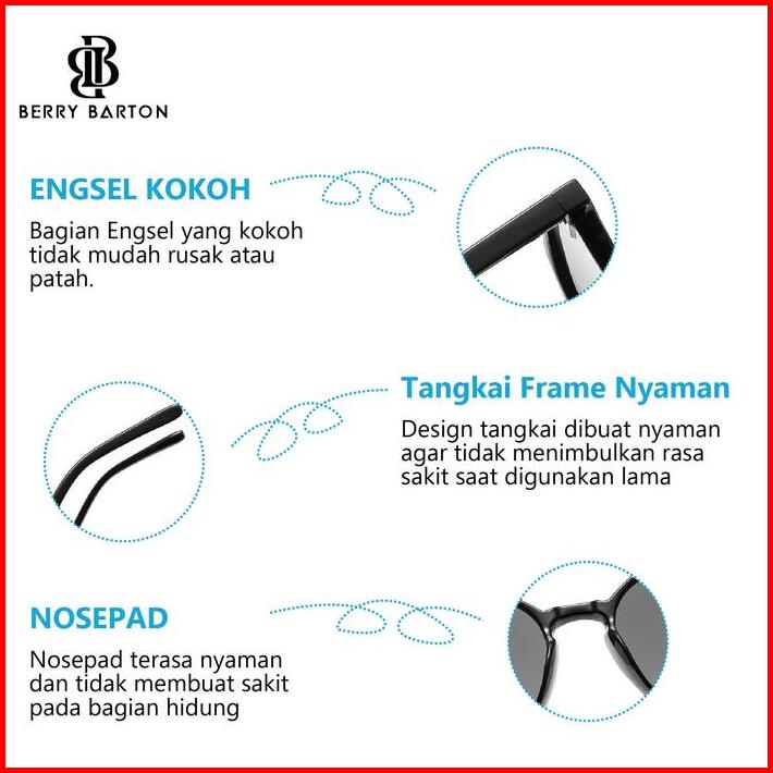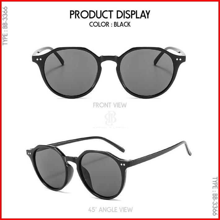 Kacamata Sunglasses Hitam Round Trendy Uv400 Berrybarton 3366