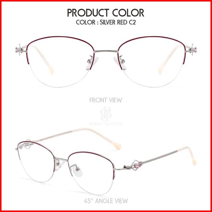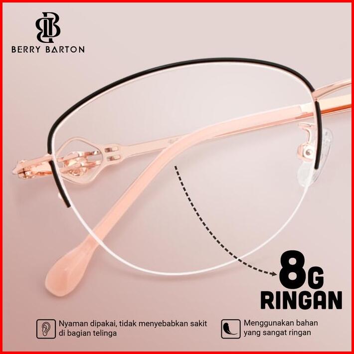 Kacamata Frame Fashion Wanita Model Semi Half Rim Titanium Lensa Anti Radiasi Blueray Photocromic Berrybarton 8025