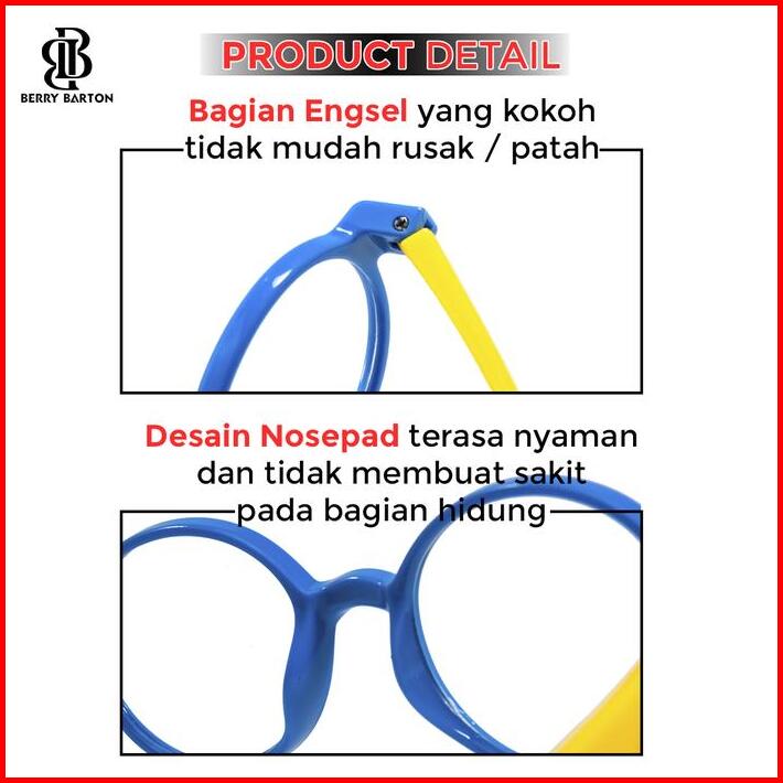 Kacamata Anak Bulat Lentur Lensa Anti Radiasi Berrybarton 8904