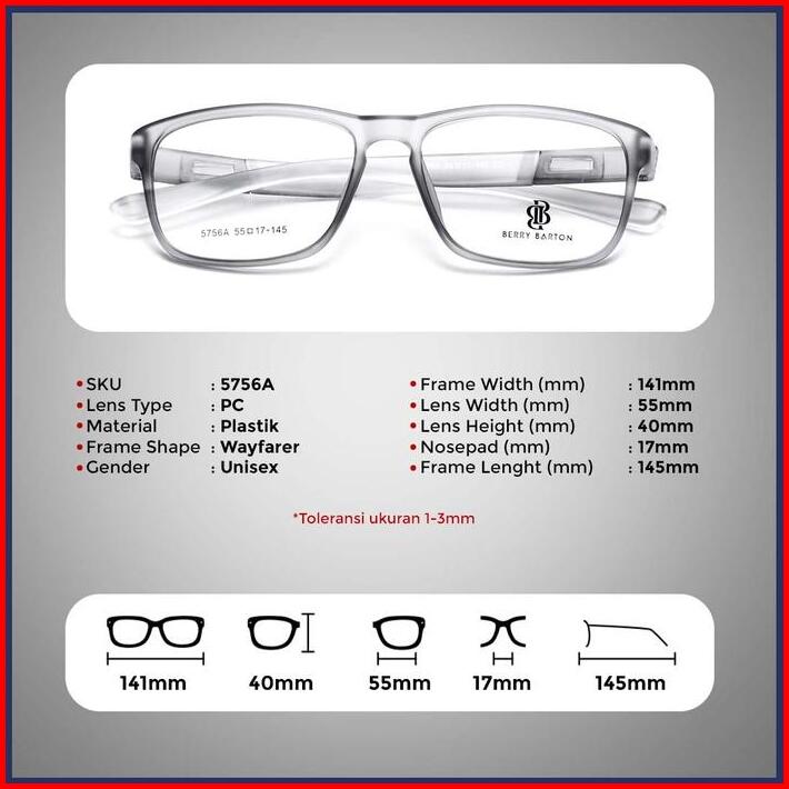 Kacamata Sport Wayfarer Bahan Plastik Lensa Minus Berrybarton 5756a