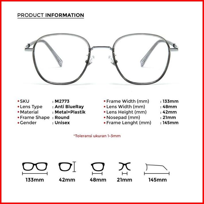 Berrybarton Kacamata Kotak Anti Radiasi Photocromic Blueray Kacamata Minus Metal Pria Wanita 2773
