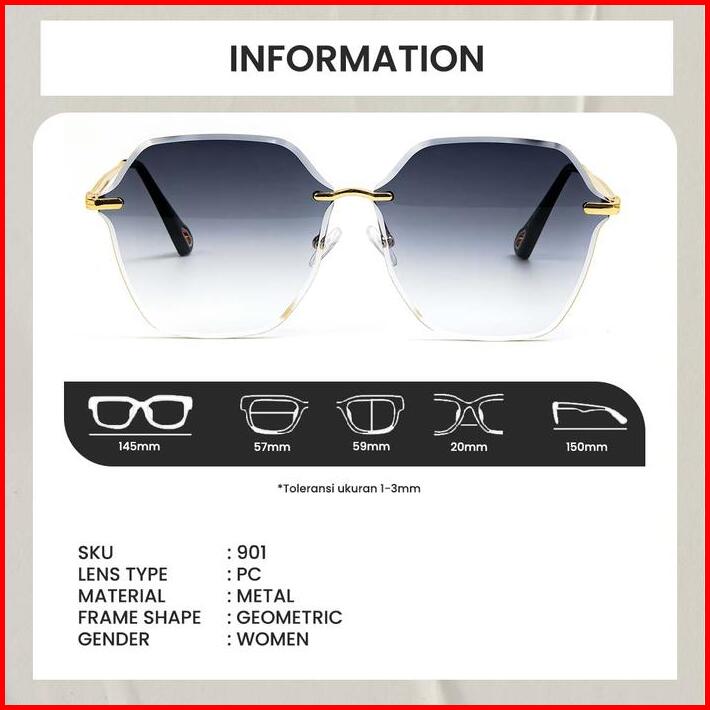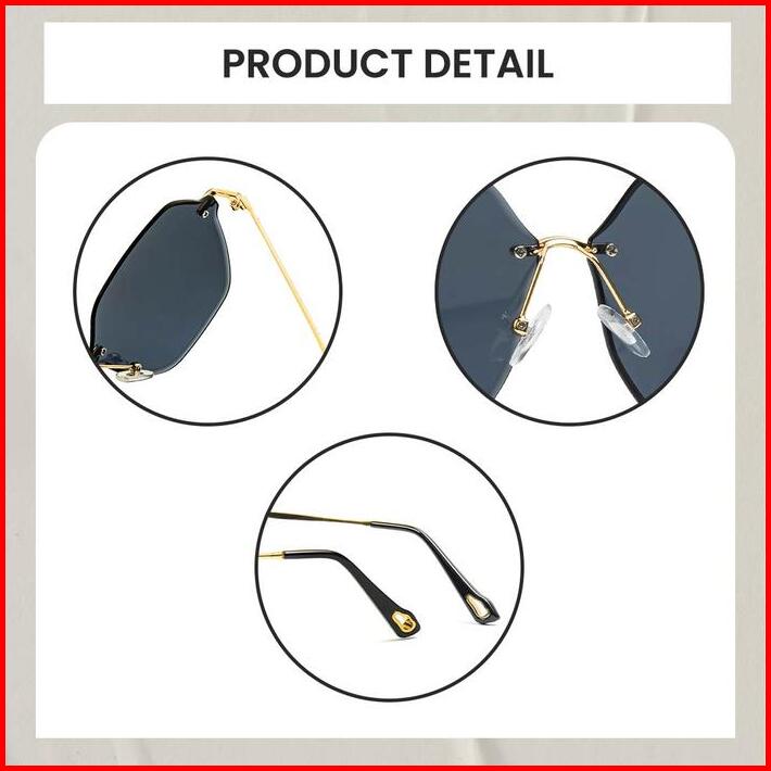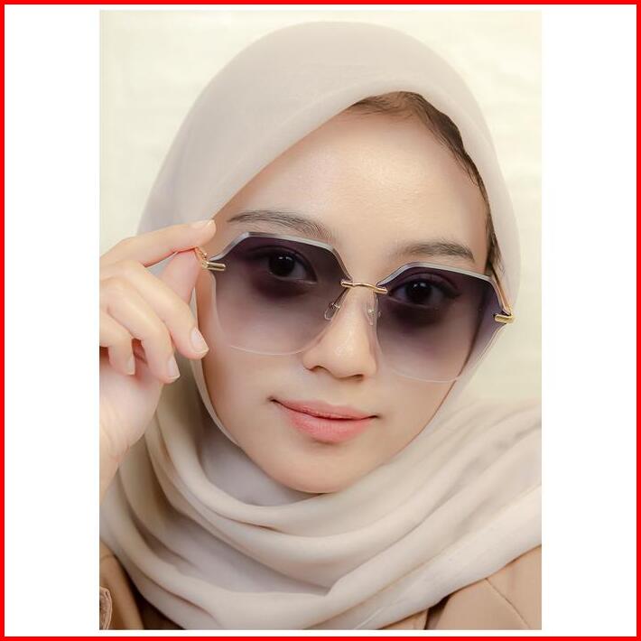 Berrybarton Kacamata Hitam Sunglasses Wanita Frameless Geometric Fashion Lensa Anti Uv400 Metal Gaya Modis Drama Korea K